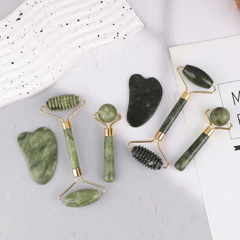 أداة تدليك من الحجر الطبيعي (غوا شا) مزدوجة النهايات مصممة للوجه، الجسم، الظهر، والقدمين. تساعد على تحسين الدورة الدموية، تقشير البشرة بلطف، ومكافحة التجاعيد. تُستخدم لتقنية التدليك التقليدية “غوا شا” التي تعزز استرخاء العضلات وتجديد البشرة.