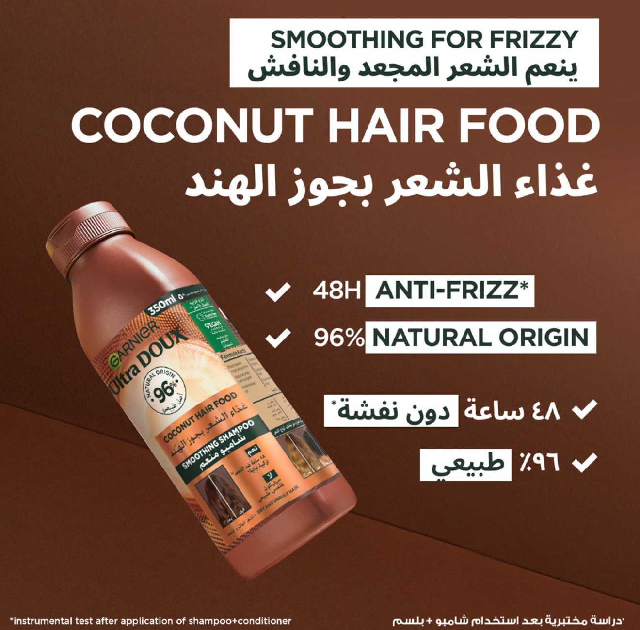 غارنييه ألترا دو شامبو مغذي للشعر بجوز الهند والمكاديميا لتنعيم الشعر المجعدشعر أقوى
