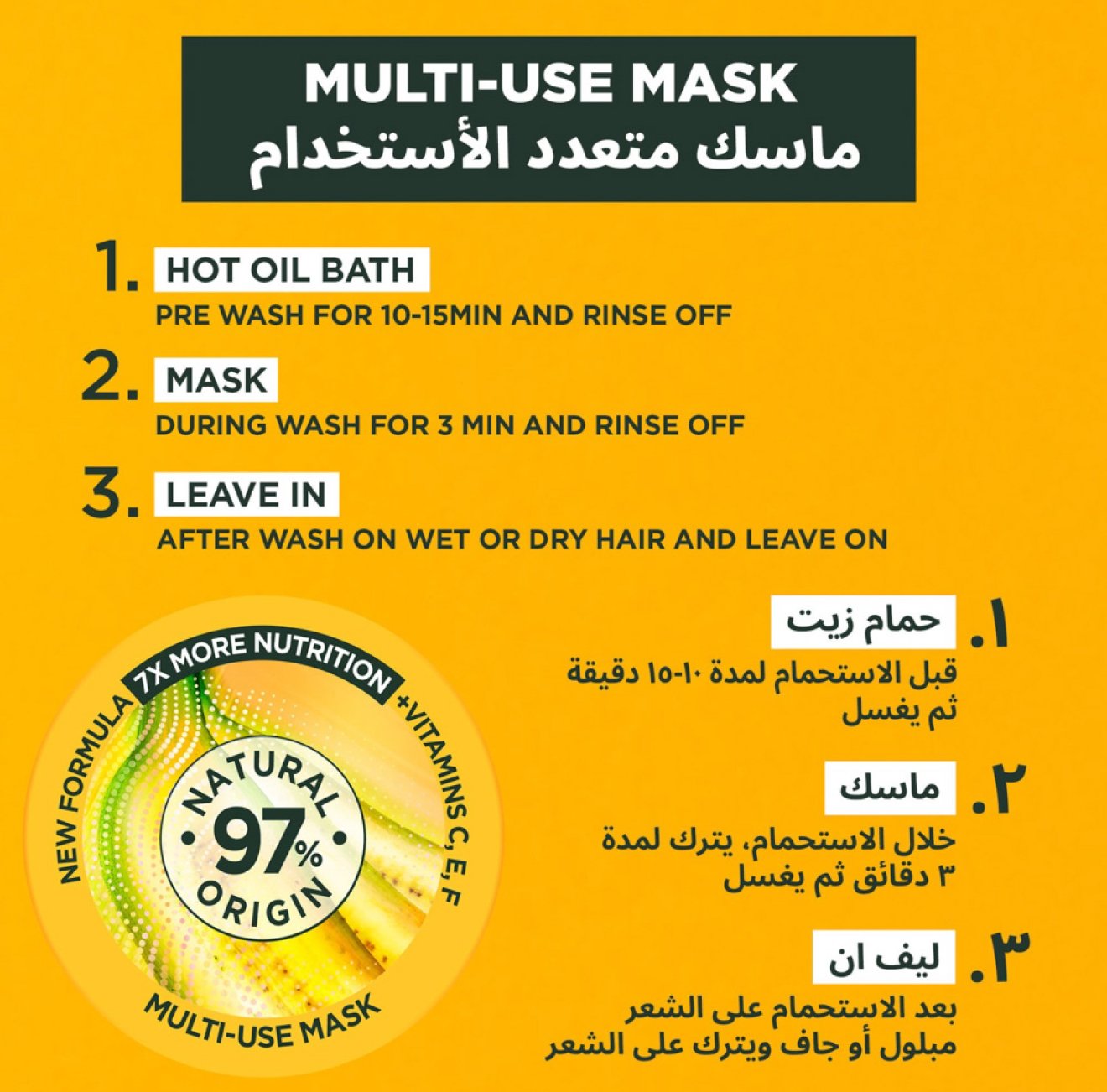 علاج مغذي 3 في 1 للشعر الجاف بتركيبة غنية بالموز والشيا المغذية.
