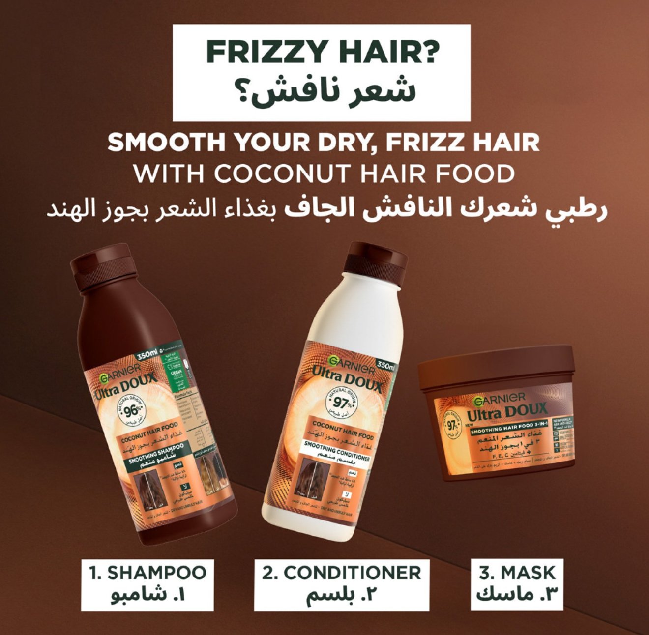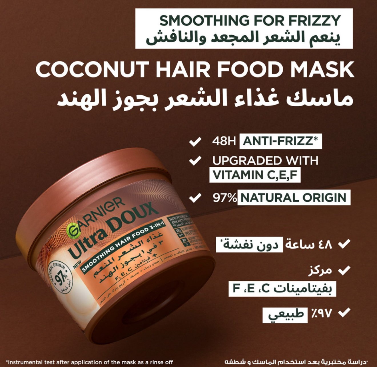 ألترا دو قناع الشعر المغذي 3 في 1 بجوز الهند والمكاديميا لتنعيم الشعر النافش من غارنييه-390مل