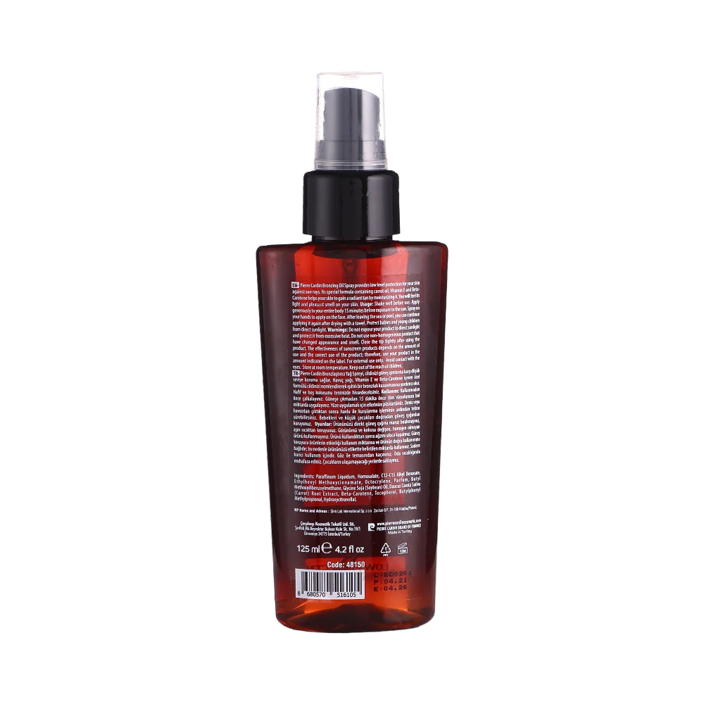 بخاخ الزيت البرونزي للحماية من أشعة الشمس من بيير كاردان هو تركيبة فاخرة تجمع بين الحماية من الشمس والتأثير البرونزي الجذاب. يتميز بقوامه الخفيف غير الدهني الذي يمنح البشرة توهجاً طبيعياً مع حماية فعالة من الأشعة فوق البنفسجية.