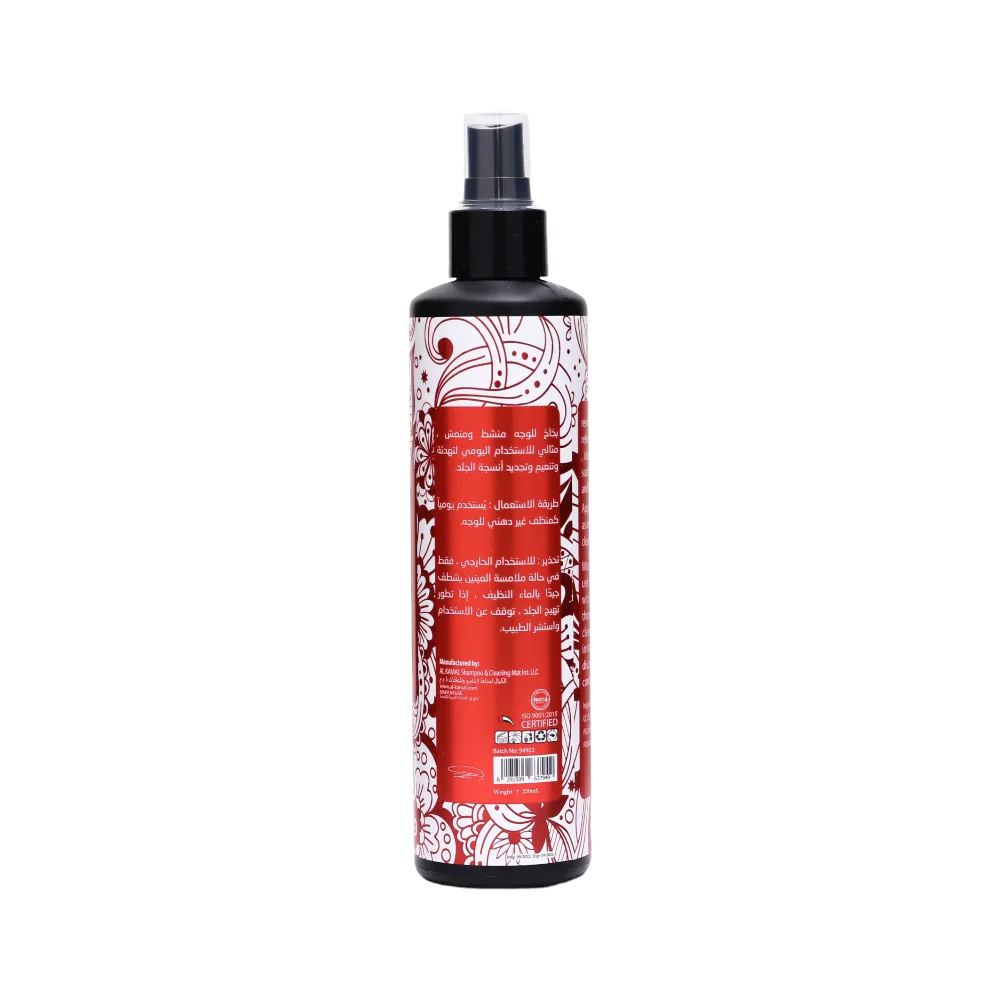 تعتمد تركيبة هذا المنتج على ماء الورد الطبيعي، خلاصة العكر الفاسي المنقية، زيت الأرغان المغذي، العسل المرطب، ومستخلص البابونج المهدئ.