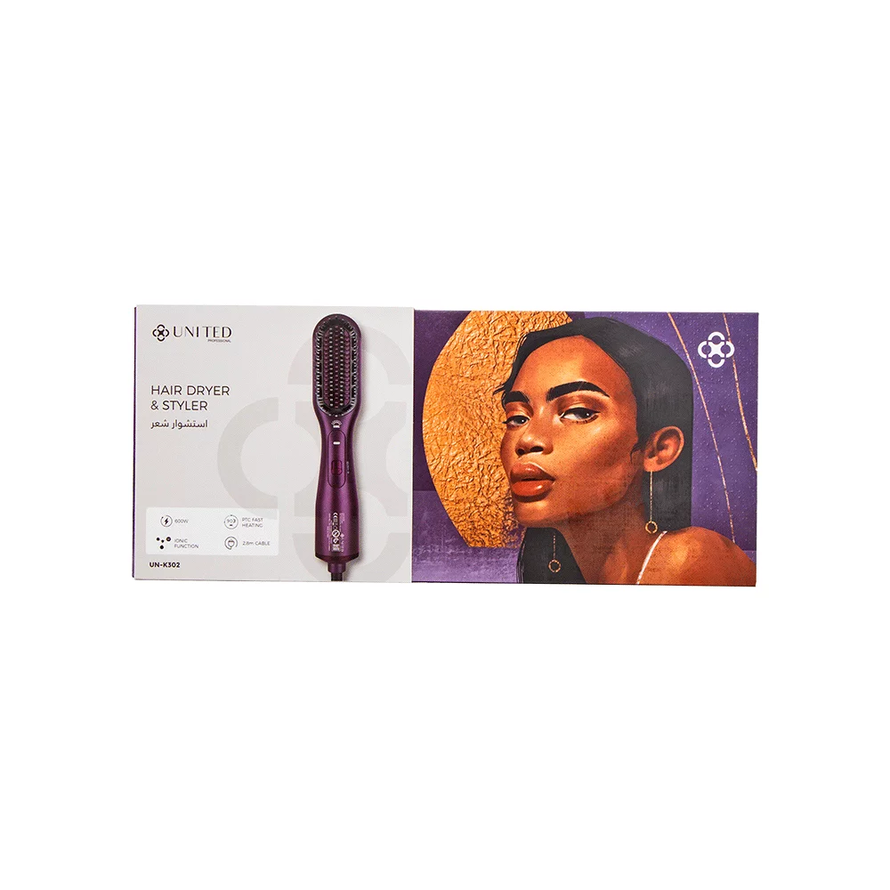 مجفف ومصفف شعر يونايتد بروفيشنال هو جهاز متطور بقوة 600 وات مصمم لتمنحكِ تجربة تصفيف احترافية في المنزل. يتميز بتصميمه البنفسجي الأنيق وأدائه القوي الذي يناسب جميع أنواع الشعر.