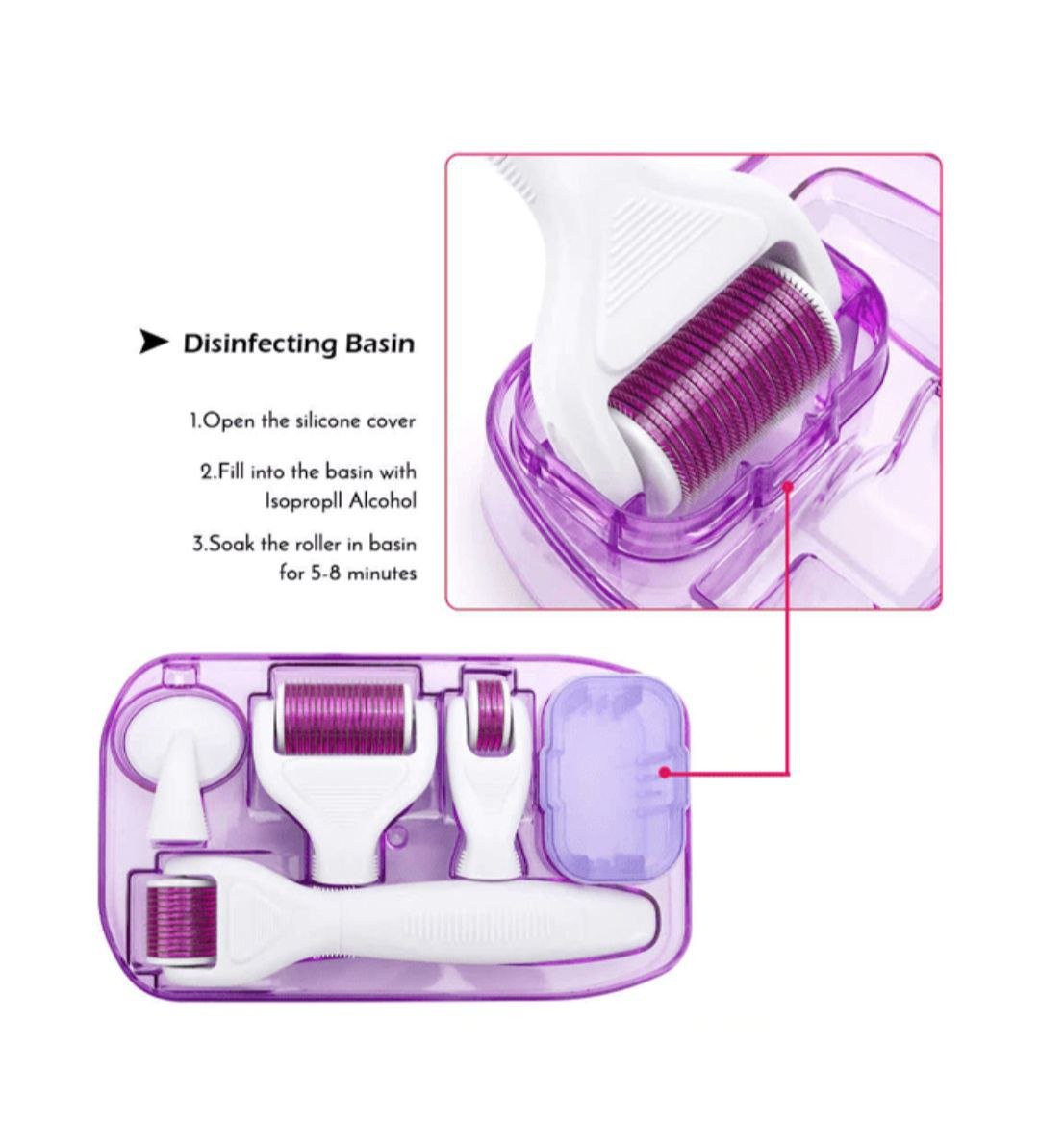نظام متكامل للعناية بالبشرة يتضمن 6 أدوات مختلفة لتدليك البشرة وتحفيز الكولاجين. مصمم لتحسين مظهر الخطوط الدقيقة والتجاعيد، شد البشرة، وإضفاء النضارة والإشراق. يأتي بحافظة مريحة مع خزان تعقيم للحفاظ على النظافة.