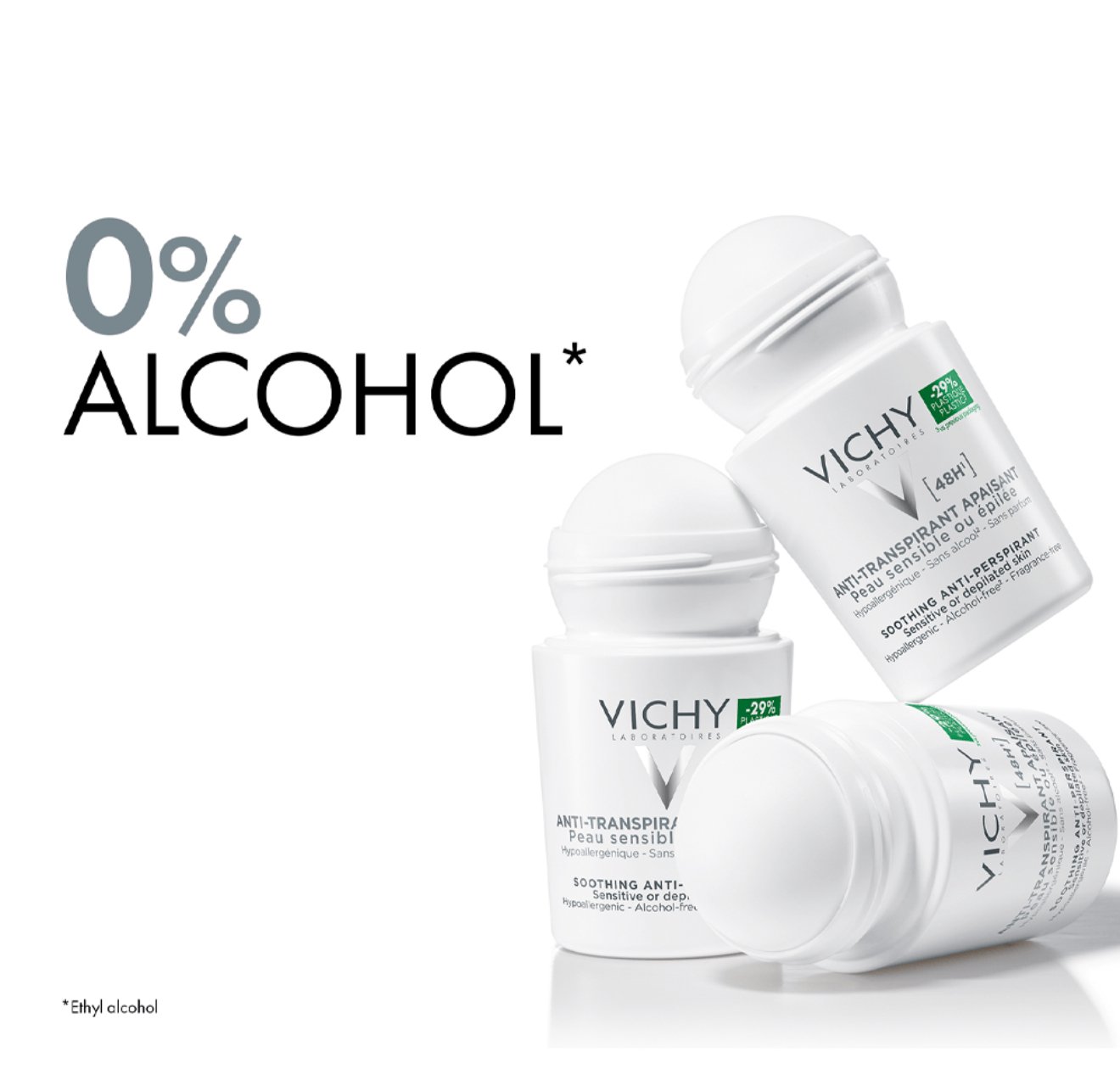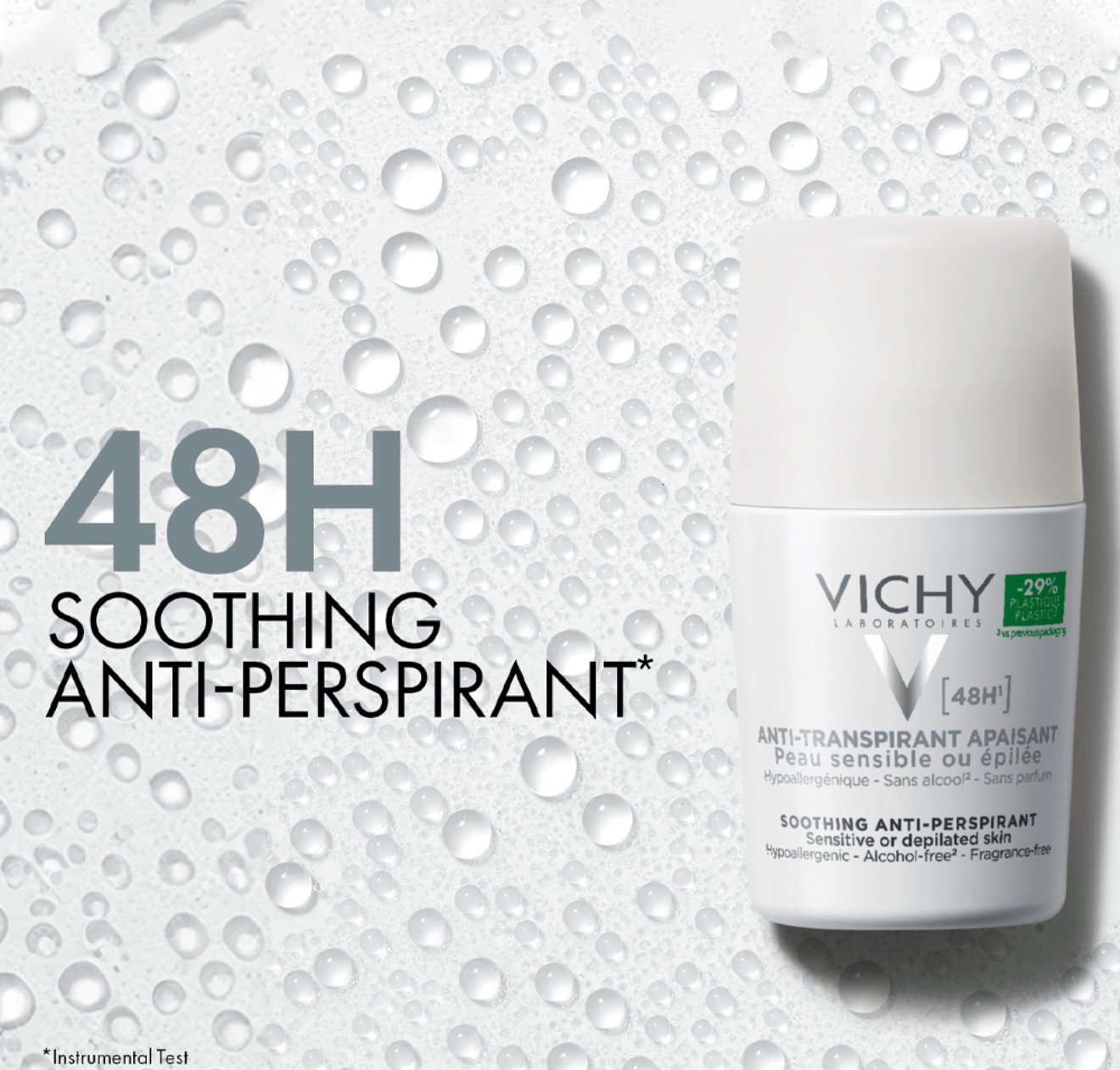 مضاد تعرق فيشي فائق الانتعاش يدوم طويلا و ينظم التعرق لمدة 48 ساعة و يهدئ البشرة .