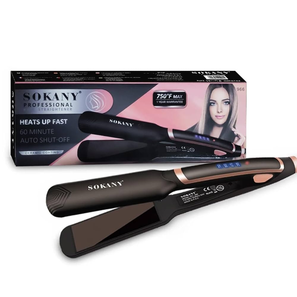مكواة فرد شعر احترافية من سوكاني (موديل HOT-906) مصممة بطبقة سيراميك ناعمة لتوفير توزيع حراري متجانس وفرد الشعر بسرعة دون تلف. تتميز بتسخين فوري وإغلاق تلقائي بعد 60 دقيقة للأمان، مما يجعلها مثالية للاستخدام اليومي المنزلي أو الاحترافي.