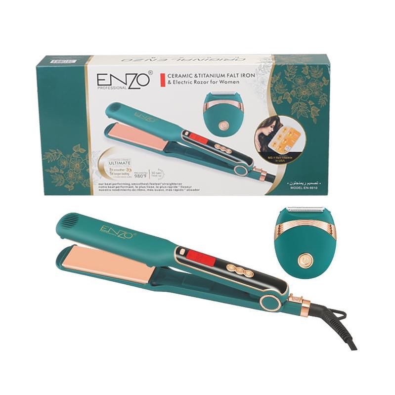 مكواة فرد شعر سيراميك وتيتانيوم مع ماكينة حلاقة للنساء من إنزو