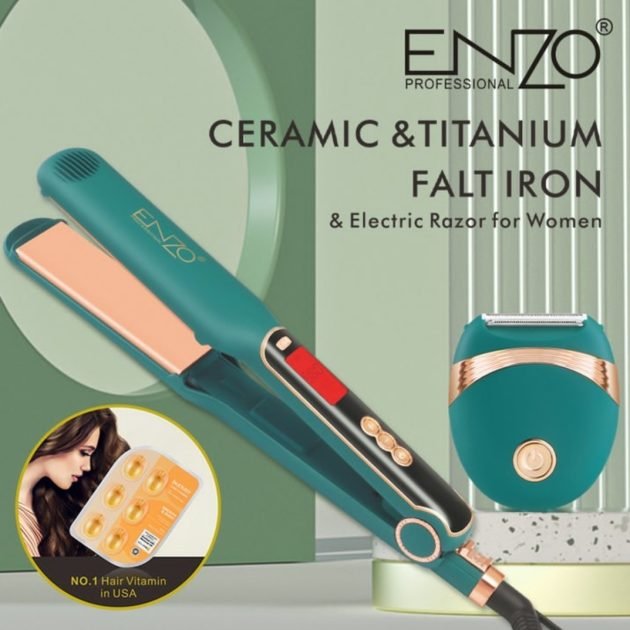 جهاز متكامل من ENZO يجمع بين مكواة فرد شعر من السيراميك والتيتانيوم عالية الأداء وماكينة حلاقة مخصصة للنساء. تتميز المكواة بتسخين سريع يصل إلى 380°F (حوالي 193°م) خلال 30 ثانية فقط، مما يوفر تجربة فرد سريعة وناعمة مع حماية الشعر من التلف. تصميمها الاحترافي يناسب الاستخدام اليومي ويقدم نتائج صالونية في المنزل.